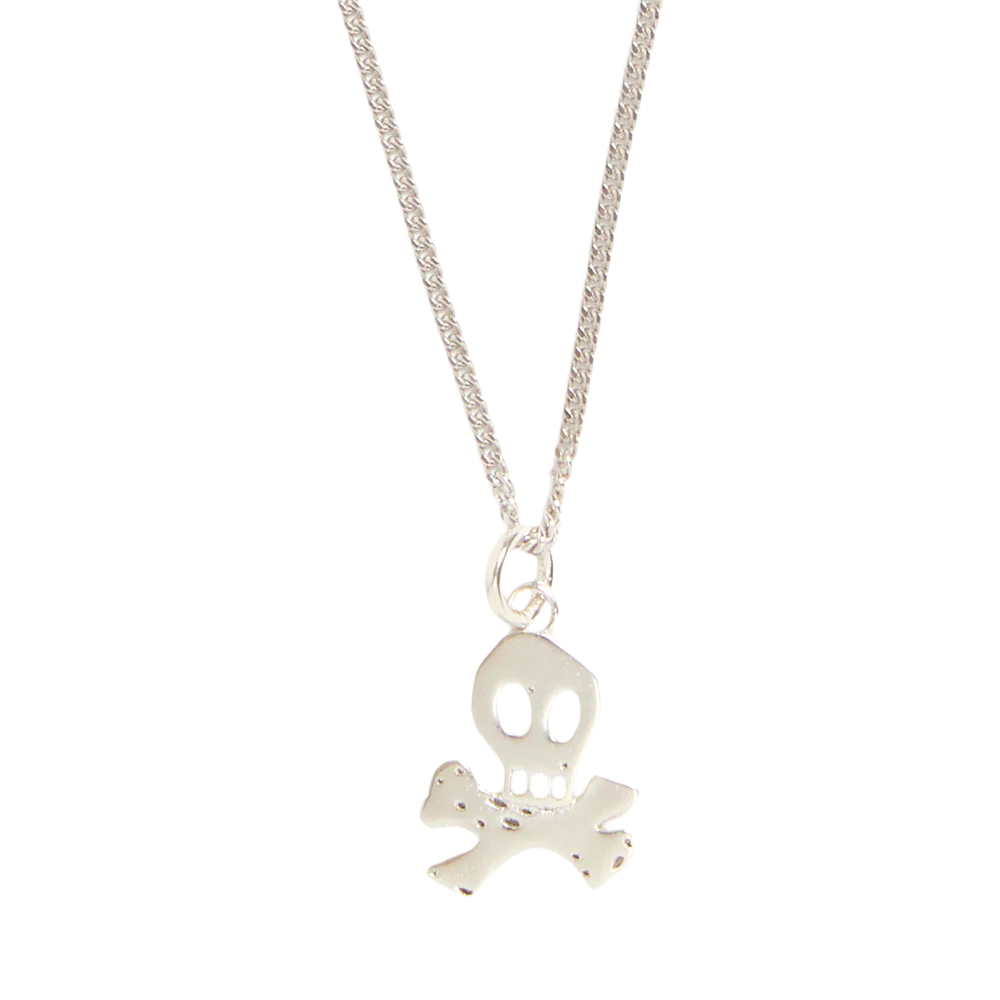 Silver skull logo necklace. 100% recycled 925 sterling silver. Can be worn as 17" or 19" chain.